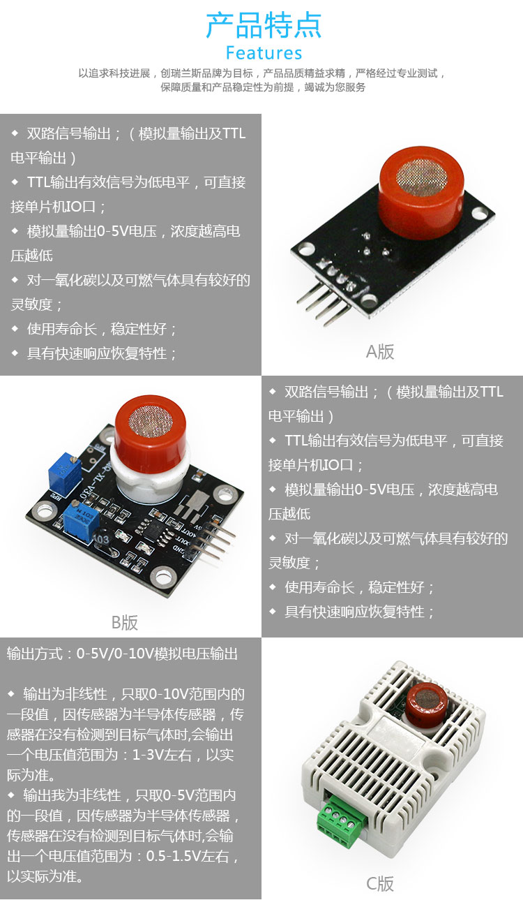 5、对一氧化碳、可燃气体有较好的灵敏度;
